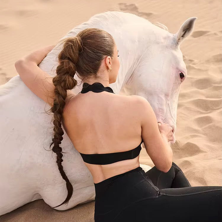 Sa coupe courte juste sous la poitrine sublime la silhouette sans compression, tandis que son dos entièrement dégagé apporte une sensation de liberté et une touche féminine affirmée.