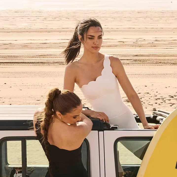 Son décolleté asymétrique délicatement découpé apporte une touche féminine et moderne, tandis que sa structure assure un maintien sans compression.