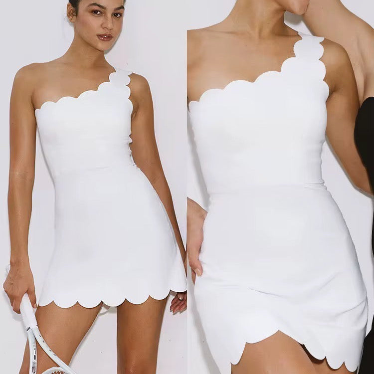 Lumineuse et féminine, cette robe Flow se distingue par son col asymétrique, signature forte de la collection. Elle allie élégance sportive et liberté de mouvement grâce à sa coupe fluide et son dos dégagé qui met subtilement la silhouette en valeur.